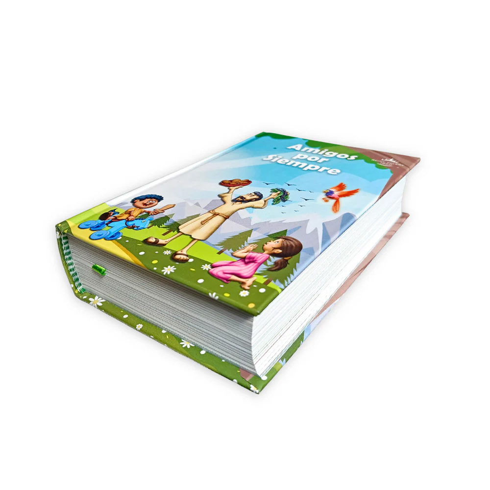 La Biblia Amigos por Siempre en versión Reina Valera 1960 contiene el texto bíblico completo y recursos prácticos que facilitan la comprensión, ideal para niños que están comenzando a leer de manera independiente.