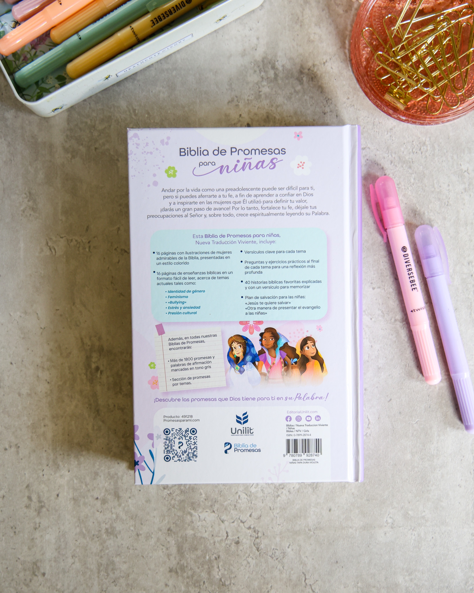 Esta Biblia presenta el texto completo en la Nueva Traducción Viviente (NTV) (disponible también en versión Reina-Valera 1960), con un diseño atractivo, lenguaje claro y contenidos relevantes para las preadolescentes de hoy.