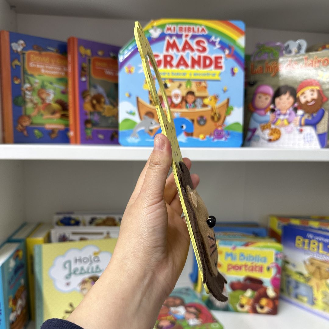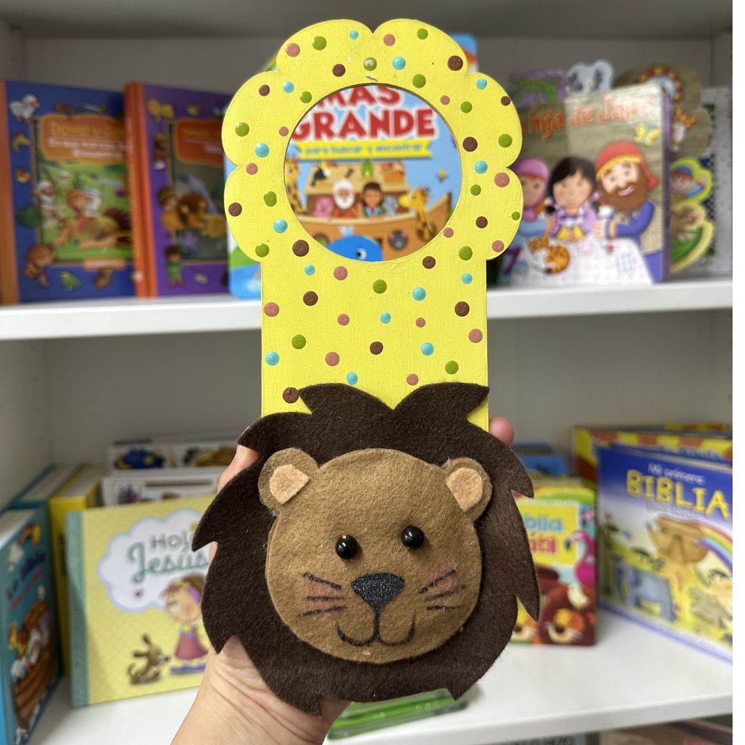 Incluye un león en relieve elaborado en material suave tipo fieltro, con melena café y expresión amigable que encanta a niños y bebés.
